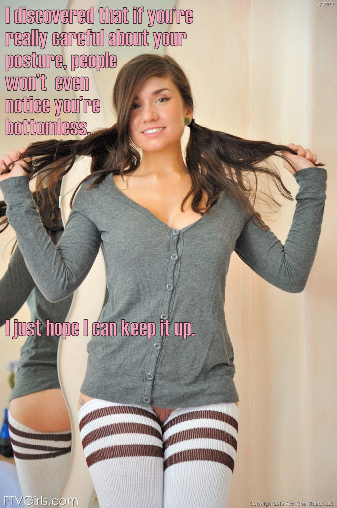 Unfortunately for her the school I went to requires that at least one inch below your navel to three inches below the tip of your genitals be uncovered. If your clothes cover too much, instead of adjusting/cutting them, they get taken away! For her that seems to mean nudity…
