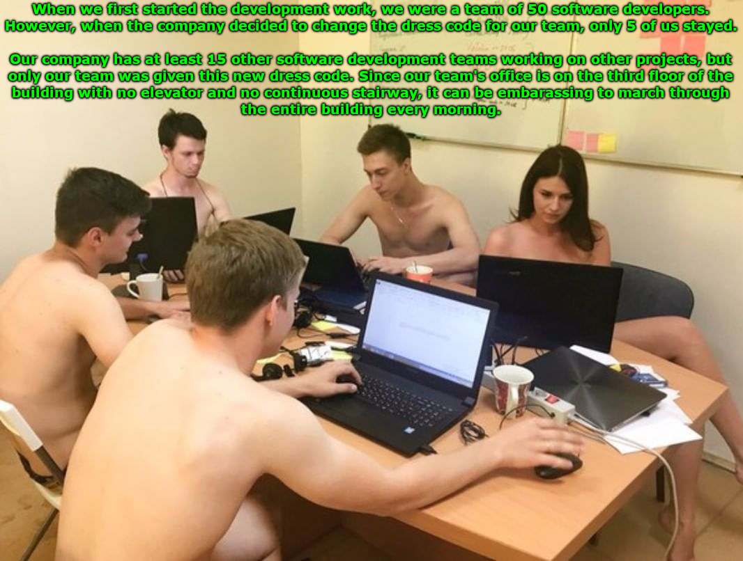 Only one Women in the office? They need to hire more female software Devs! It cant Always be a total Sausage fest. Reply