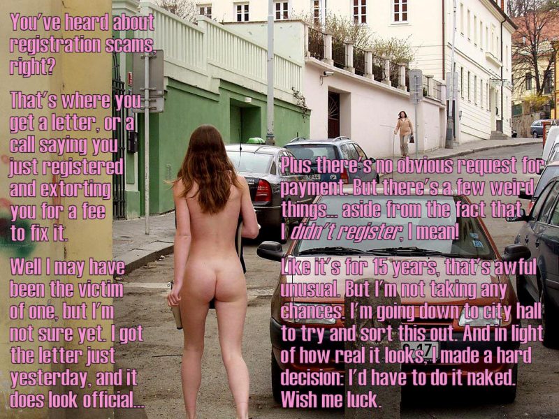 If she’s not registered… yet, she soon will be. Walking into city hall naked, without being registered, is a good way to get involuntarily registered.