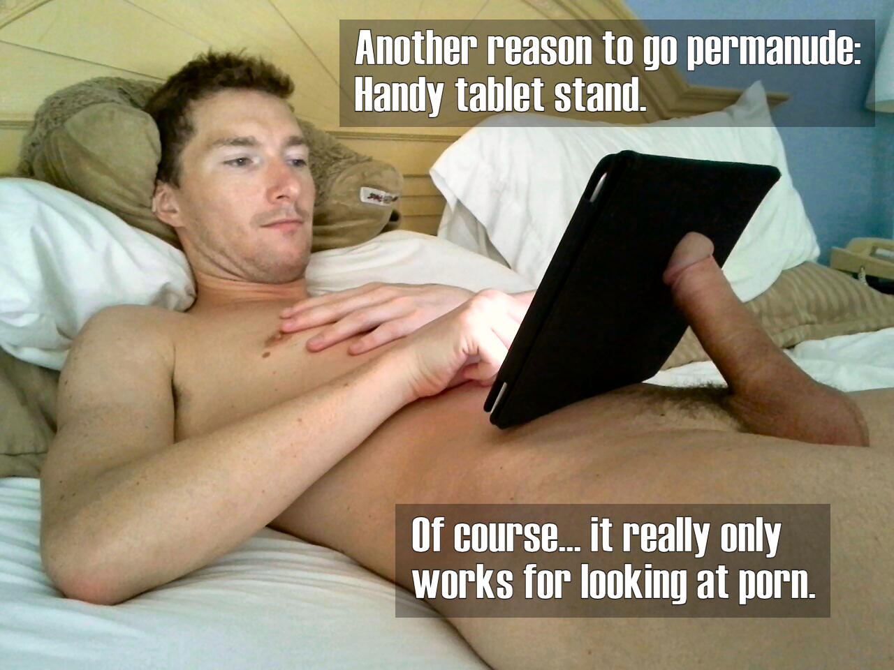 1. I can admit I have used my dick as a tablet holder when naked lounging around. The girlfriend finds it funny and annoying that she can’t do it too. 🙂