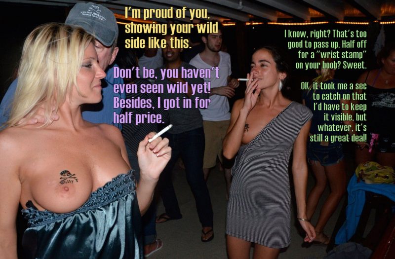 So, if she got both breasts stamped could she get in for free, and remain completely topless or would they only issue one stamp per guest? Reply