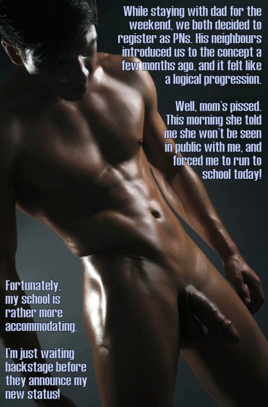 I decide to sit while I wait because my bare feet are sore, not accustomed to running yet. I’m nervous, excited, and embarrassed all at the same time. How will my friends react to my nudity? My job? This will be quite an adventure. Reply