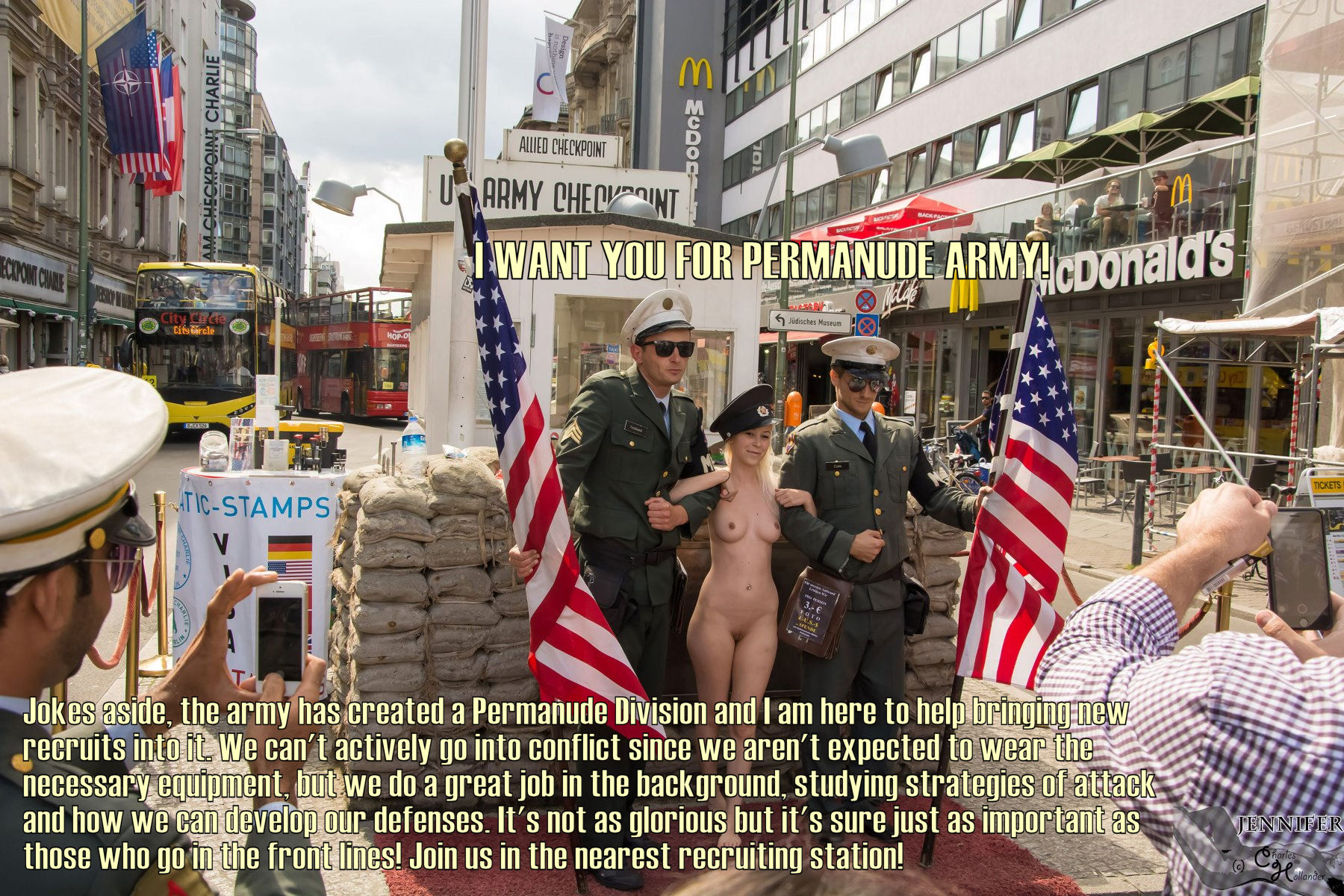 Cool. But I more meant more like… why is a nude photo being taken in front of a fake US Army checkpoint in the middle of a busy city center? I can only assume it’s some sort of festival or special event, but beyond that I’m let with a lot of questions.