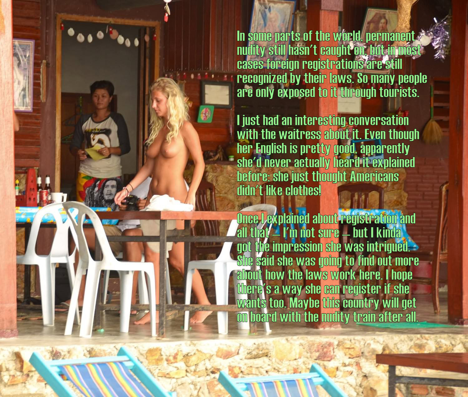 The simplest way for the waitress to register is to visit one of the countries that allow PN registration that is recognized in their own country. Reply