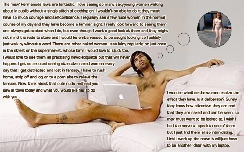 Well, no. Public nudity is not about ordering onlookers to masturbate now. It’s about being accepted as the person you are in the outfit you want to wear and not having to hide behind a veil just so that others don’t look down their noses at you. And if a part of the skin is visible because the person wants to let the sunlight in, then that’s just the way it is. It’s about being able to meet people at eye level and not having to hide behind a mask.