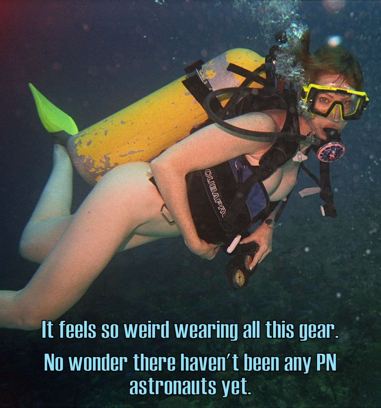 Sara wondered why it was called skin diving when so much was covered. Still, the water flowing across the little skin that was exposed did feel pretty nice.