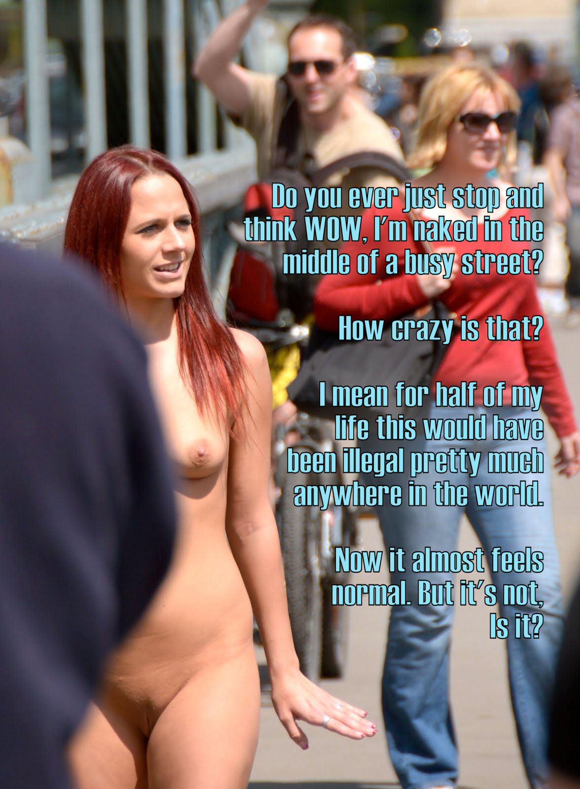 2. Alt: As I look around, I wonder why people are still wearing clothes when PN registration is legal now. Being naked for a month has given me a new perspective, and I genuinely question the utility of clothes, let alone its widespread use.