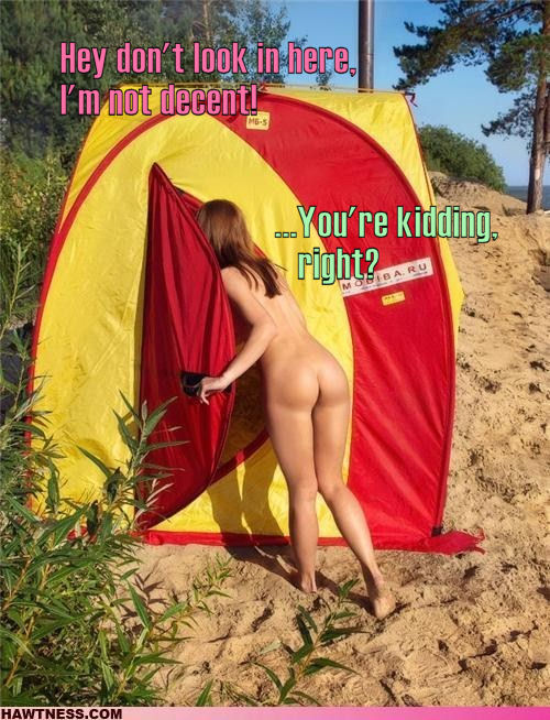 2. Doris, it’s time to get out here. There’s no sense in coming to a nude beach if all you’re going to do is hide in the tent. There’s a volleyball game starting up and they want us to play. So get out here and give those boobs some sunshine.