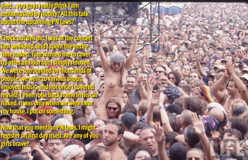 1. You haven’t lived until you’ve experienced the mosh pit at a concert in the nude. Imagine hundreds of hands stroking your body while you’re entranced by the music. You emerge all hot and sweaty and tingling all over.