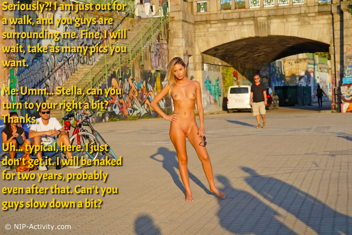 2. It’s a shame that the fellas with the cameras won’t leave Stella alone so that she can simply enjoy her day. It’s as if they have never seen a naked female walking in public before this.