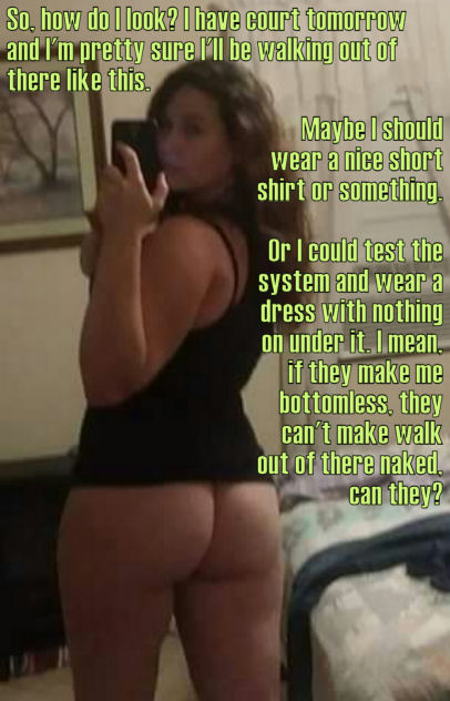 3. In the case that your dress is your only attire, the law treats it as a bottom for the purposes of sentencing. So when the judge tells you to remove your bottoms, that would mean your dress. So, yes, you’d have to walk out of court completely naked.