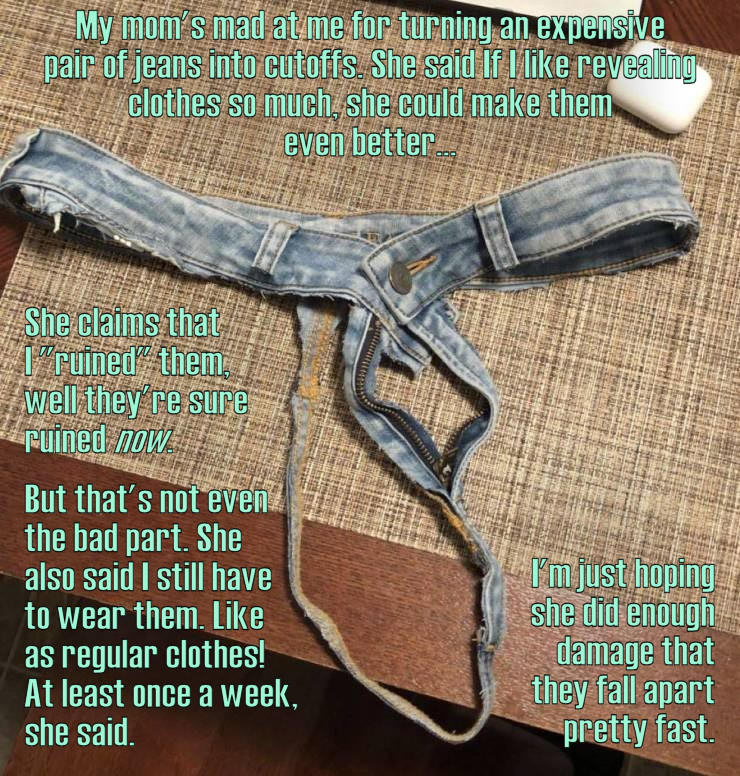 • Since her mother’s forcing her to wear them, I would think it counts. Parents and schools aren’t limited to just the basic topless, bottomless, naked options. They can get creative if they want to. Although I guess if one aspect of this is questionable, it’s the “at least once a week” part. That seems to leave it to the daughter’s discretion somewhat, where as normally it’s has to be the parent who decides.