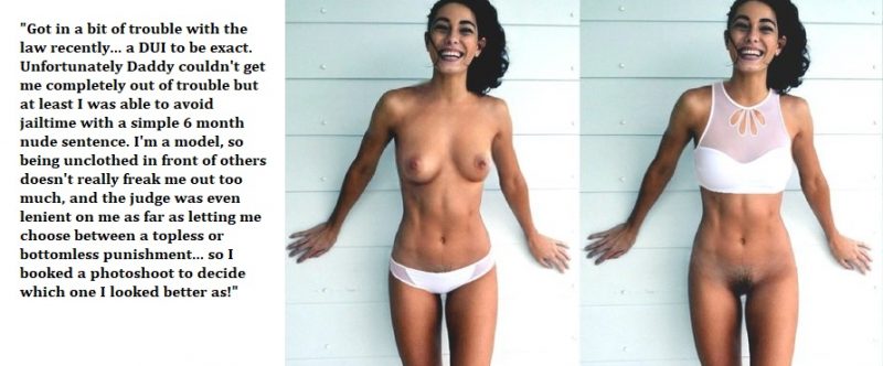 In the Nude World Order setting, toplessness is not officially used as a legal punishment, although schools and parents could if they want. Normally it’s just something women can sign up for if they want to. Also, some places allow women to go topless without having to register, just like in the real world.